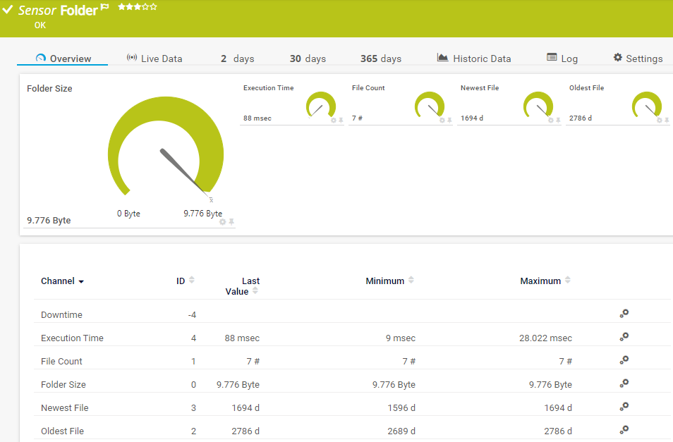 Show down status if older: Set the sensor to the Down status if one of the files in the folder is older than a specific limit unit.