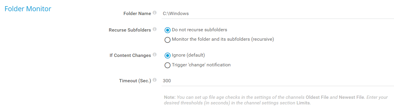 Specify if the sensor monitors the folder for certain file ages and shows a corresponding status: