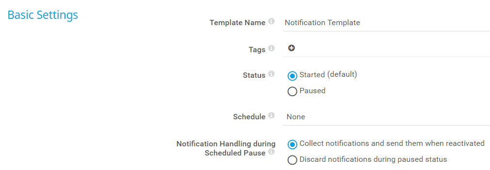 The overall status of the notification template must be Started (default) to apply any schedule settings.