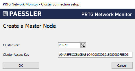 Click Create a Cluster to create a cluster. The current PRTG core server is then the master node of the cluster.