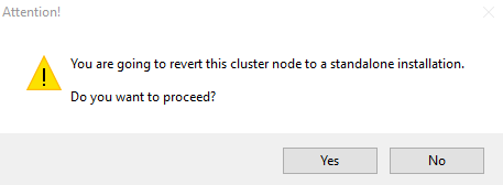 Click Yes to convert this cluster node to a standalone installation.