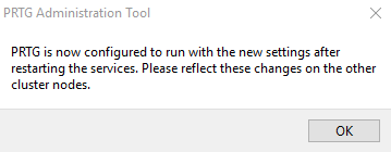 After confirming your settings, you are asked to restart Windows services. Click OK to restart the Windows services so that your changes take effect.