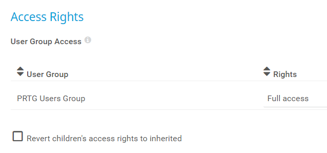 Write access: Users in this group can see the object, view its monitoring results, and edit its settings. They cannot edit its access rights settings.