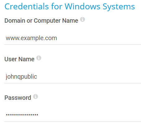 Enter the domain or computer name of the user account with which you want to access the Windows system. PRTG uses this account for Windows Management Instrumentation (WMI) sensors and other Windows sensors.